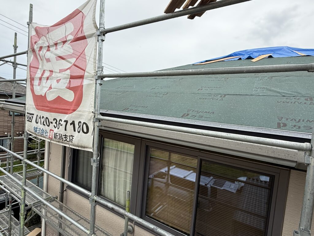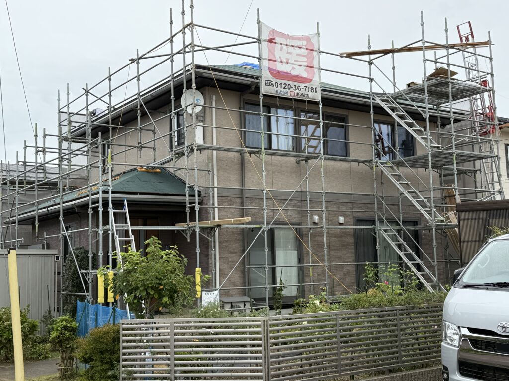 🆕❗️屋根と外壁工事、着工中です❗️外壁工事 築年数 築25年 施工内容 屋根カバーリング工事、外壁カバーリング工事、雨樋交換、その他 燕市 Z様 いま始まりました!完工まで気合いをいれてやります! ダイワハウスの建物です!